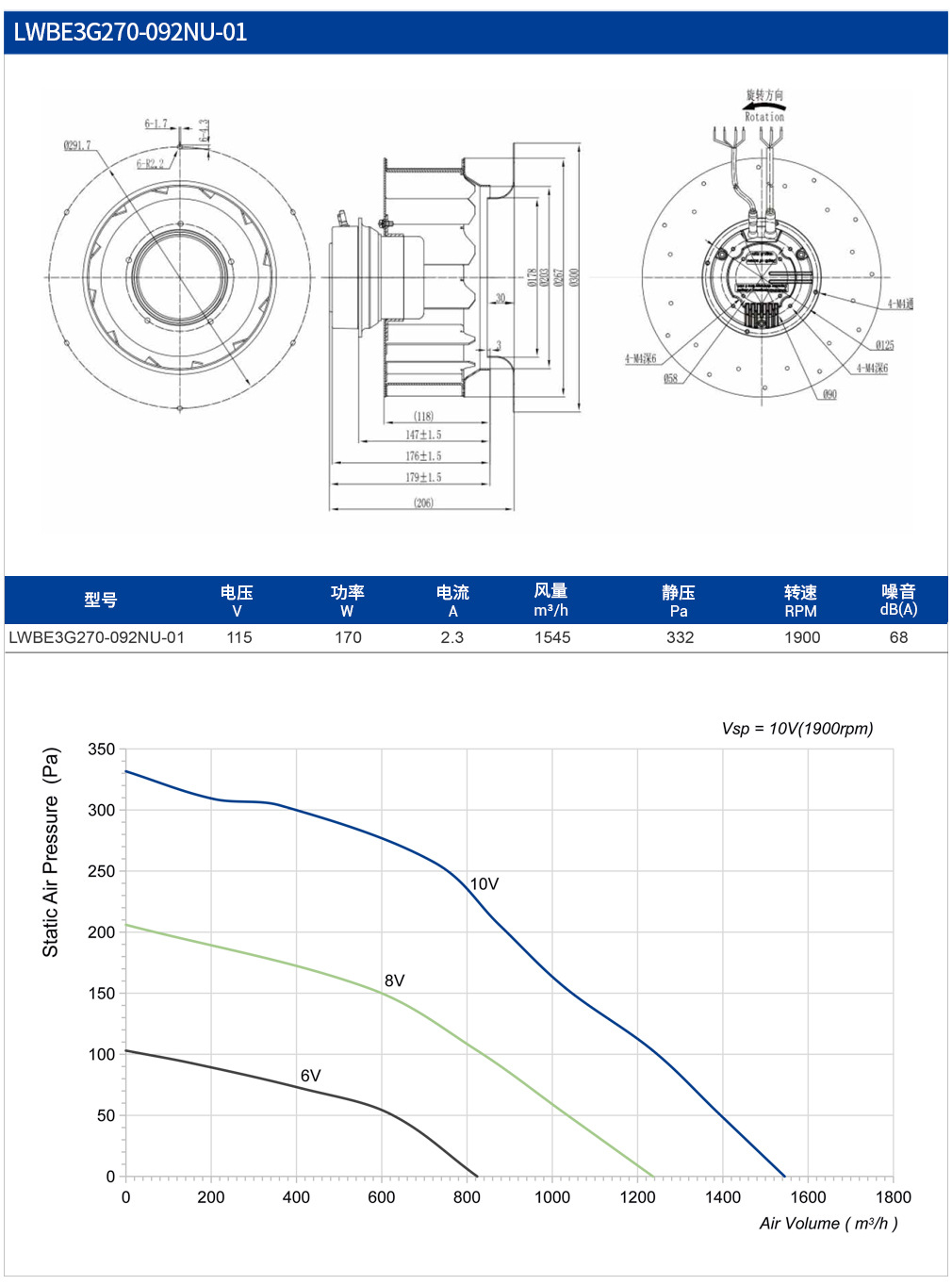 風(fēng)機(jī)風(fēng)量高達(dá)17000 m3/h,尺寸:250-630 mm(葉輪直徑),節(jié)能,后傾葉輪,EC控制器,無級調(diào)速。